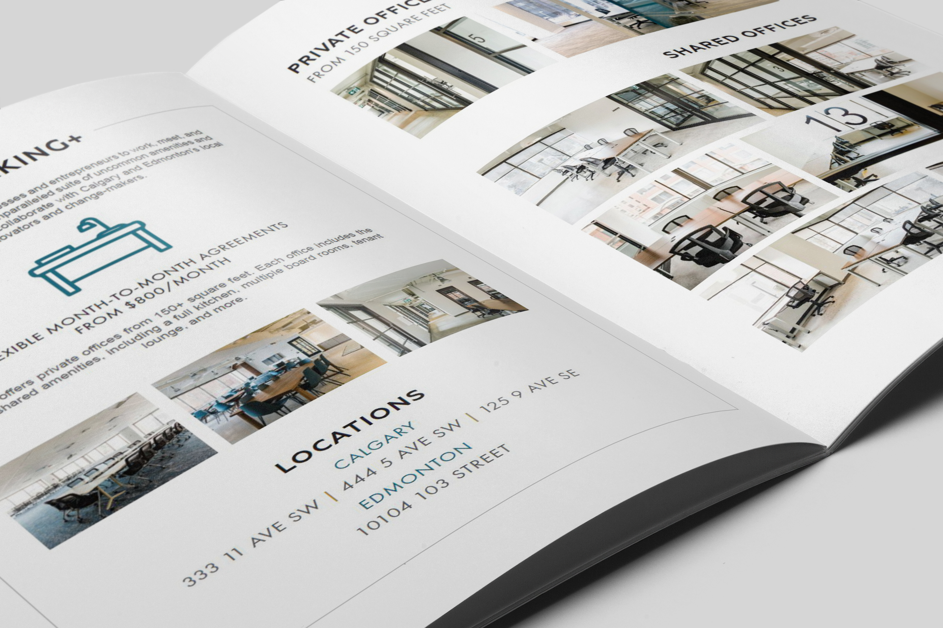 Branding developed for a new Alberta coworking space, 2018. Included logo, brand guide, brochure, website, document templates, and all associated copy.