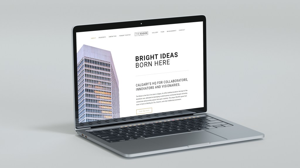 Development of a building identity for a redeveloped office tower in downtown Calgary, 2018. This included the logo, website, leasing collateral, sub-brands, and interior wall graphics.